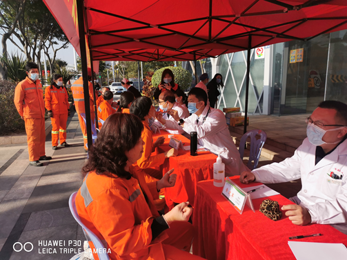 为进一步推动“爱心厦门”建设,1月29日上午,市海沧医院联合区总工会开展了“关爱环卫工人·致敬最美劳动者”爱心义诊活动。我院副院长、工会主席游立、纪委书记、工会副主席蓝玉培,市劳模、副院长冯水土带领各党支部党员志愿者一行13人参加了活动,并向环卫工人赠送牛奶、口罩等物品。凤凰花志愿者向环卫工人派发疫情防控宣教手册,普及了心肺复苏相关知识,提供了骨科、心血管内科、呼吸内科等相关疾病的筛查与诊疗,并做了健康指导,此次活动受到了在场环卫的积极响应。